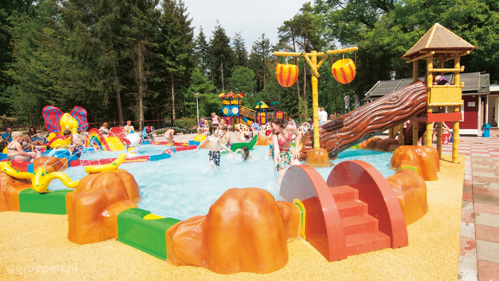 Groepsaccommodatie Beekbergen Deze groepsaccommodatie is gelegen in een ongerept natuurgebied midden op de Veluwe. U kunt met uw groep gebruik maken van de faciliteiten van het park, o.a. restaurant, snackbar, verwarmd zwembad, air trampolines, ten...