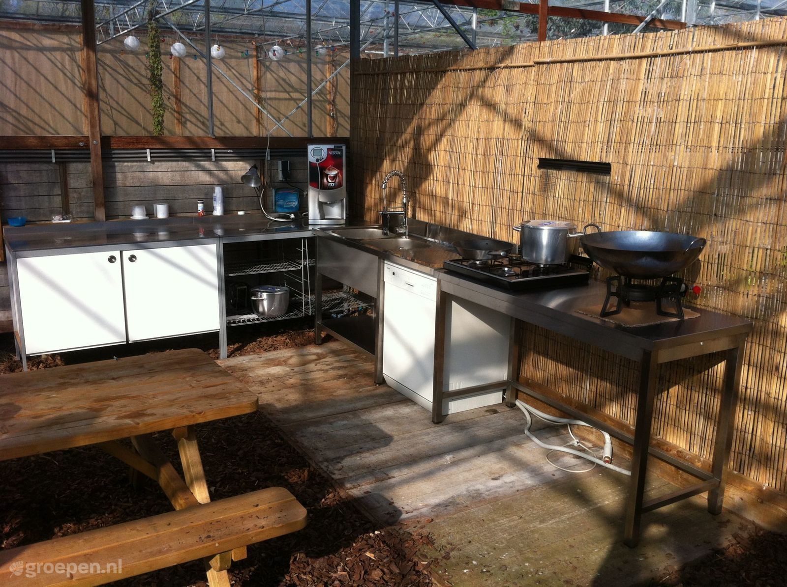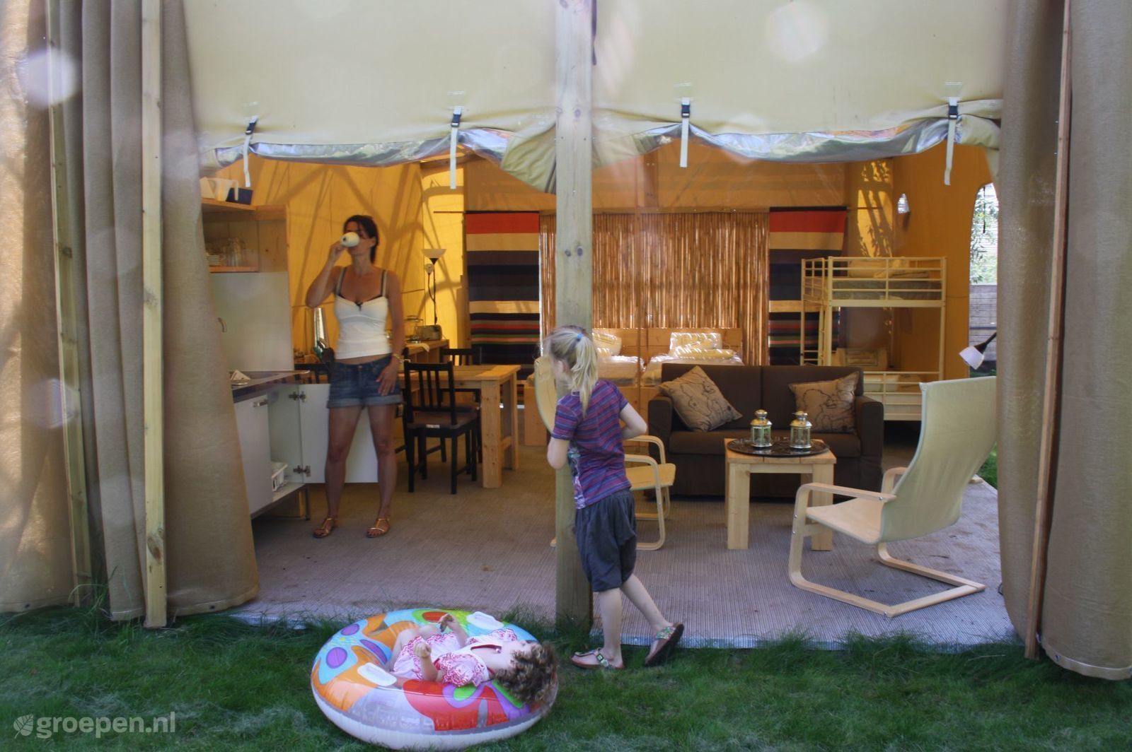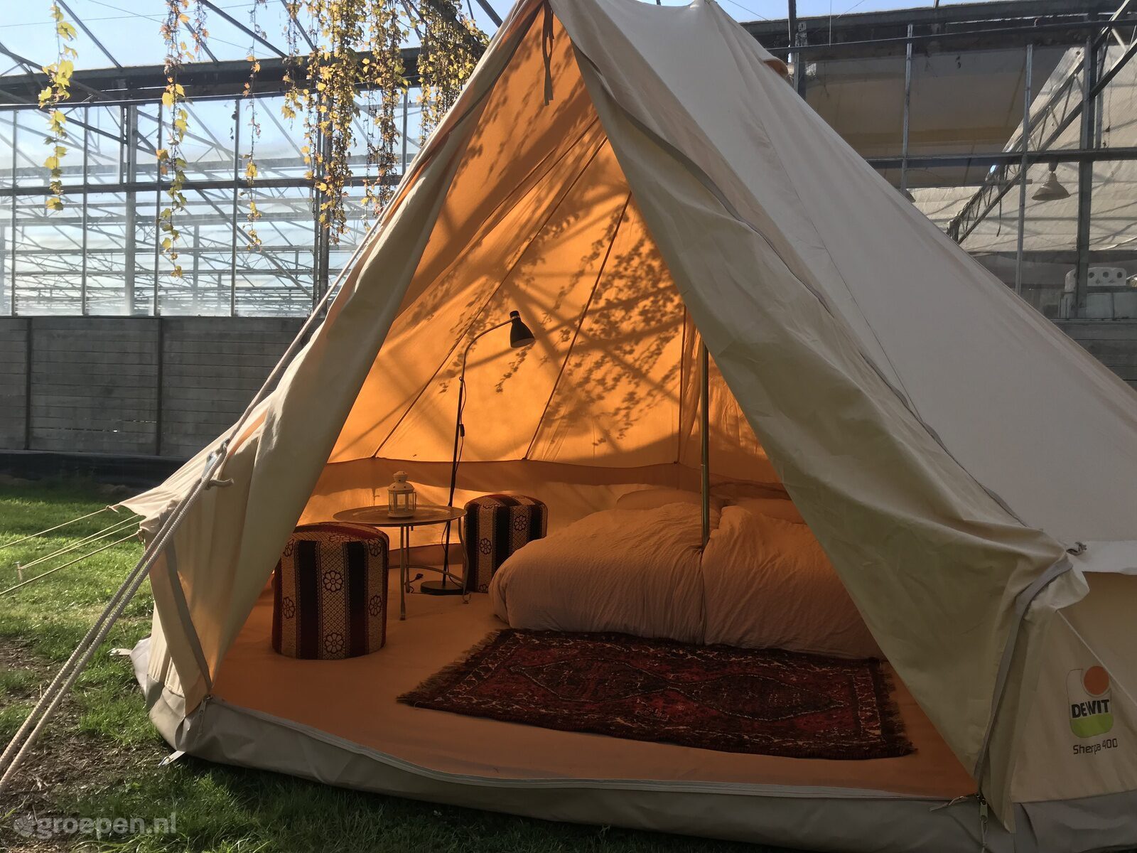 Groepsaccommodatie Lutjebroek Onze accomodatie bestaat uit 5 grote 4 persoons safaritenten die naast elkaar staan in onze bloemenkas! De gevel aan de noordkant is geheel verwijdert zodat er glazen afdak is ontstaan.