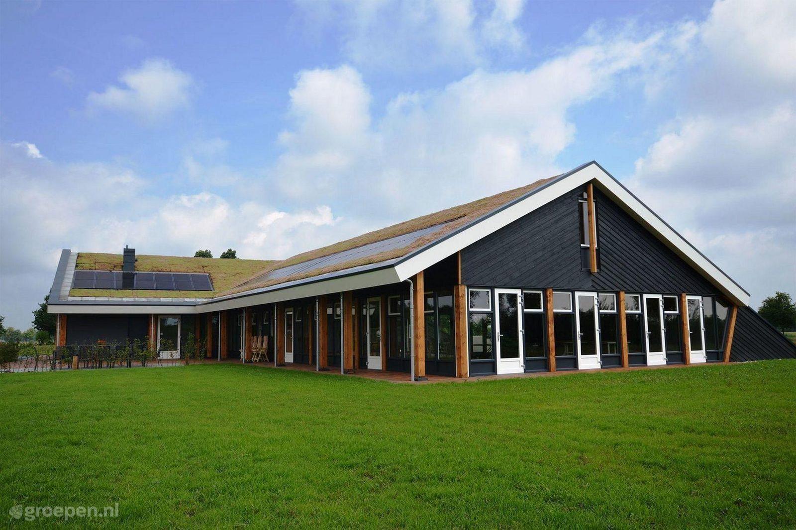 Groepsaccommodatie Rijssen Midden in de natuur ligt deze unieke groepsaccommodatie. Door het prachtige sedumdak gaat het gebouw volledig op in de omgeving.